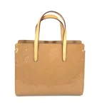 An elegant handbag with embossed logos on its glossy surface beautifully combines tradition and innovation, making it ideal for daily use. It also boasts excellent stability with bottom screws.